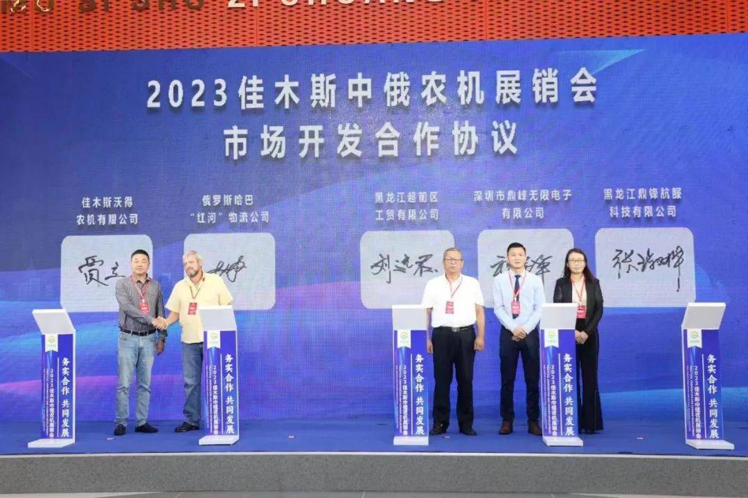 開幕式上,佳木斯萬邦農機、新疆新研牧神科技有限公司分別與俄羅斯列寧區“盧卡什維奇”農場、俄羅斯比羅比詹遠東跨境公司簽署農機采購合作協議;佳木斯沃得農機有限公司、黑龍江超前區工貿有限公司分別與俄羅斯哈巴“紅河”物流公司、黑龍江鼎鋒航服科技有限公司、深圳市鼎峰無限電子有限公司簽署市場開發合作協議。
